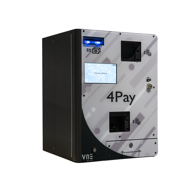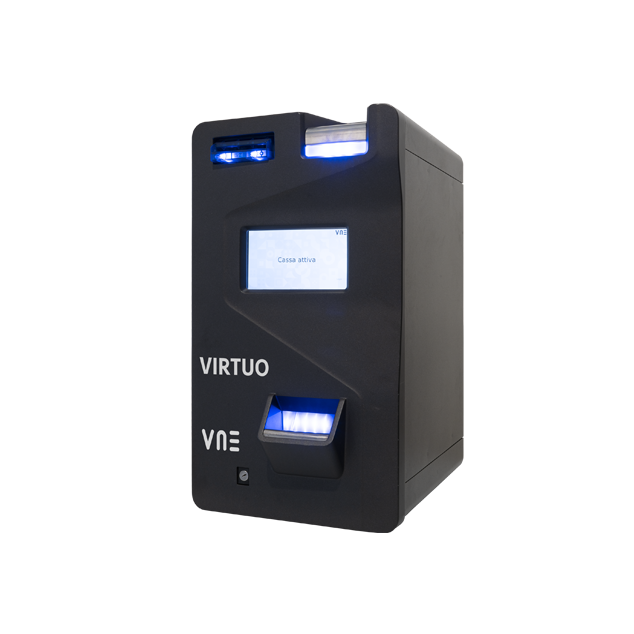 Virtuo è una macchina realizzata per accettare pagamenti in contanti e erogare il resto automaticamente.